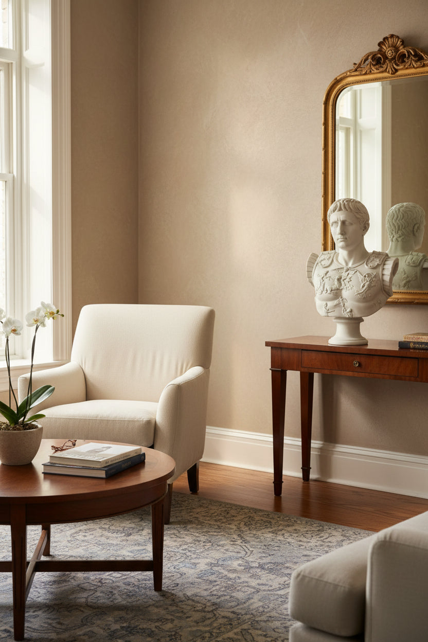 Eine sehr detaillierte große römische Büste, die Kaiser Augustus Caesar in seiner Zenturio-Brustpanzerung zeigt.