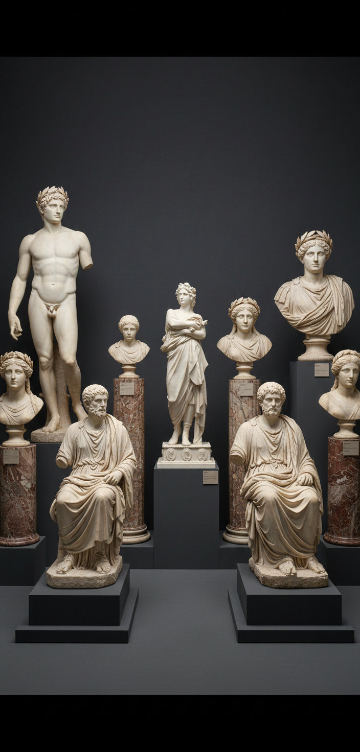 Eine schöne romantische Marmorskulptur von Kaiser Julius Caesar in seiner Amtsrobe, hält Senatsrollen und eine Lorbeerkrone.
