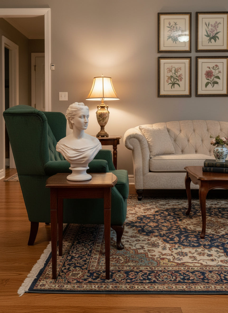 Ein wunderschönes, feminines Porträt in Marmorbüste einer Frau mit Klasse, Kultiviertheit und Stil.