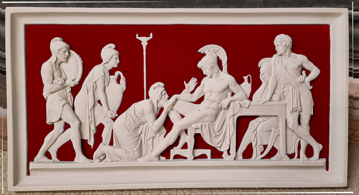 Priamos fleht Achilles an , ein Relief nach Bertel Thorwaldsen.