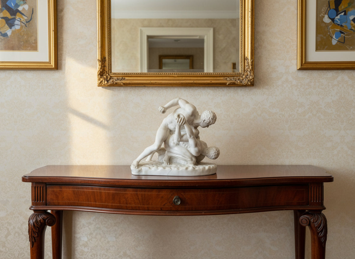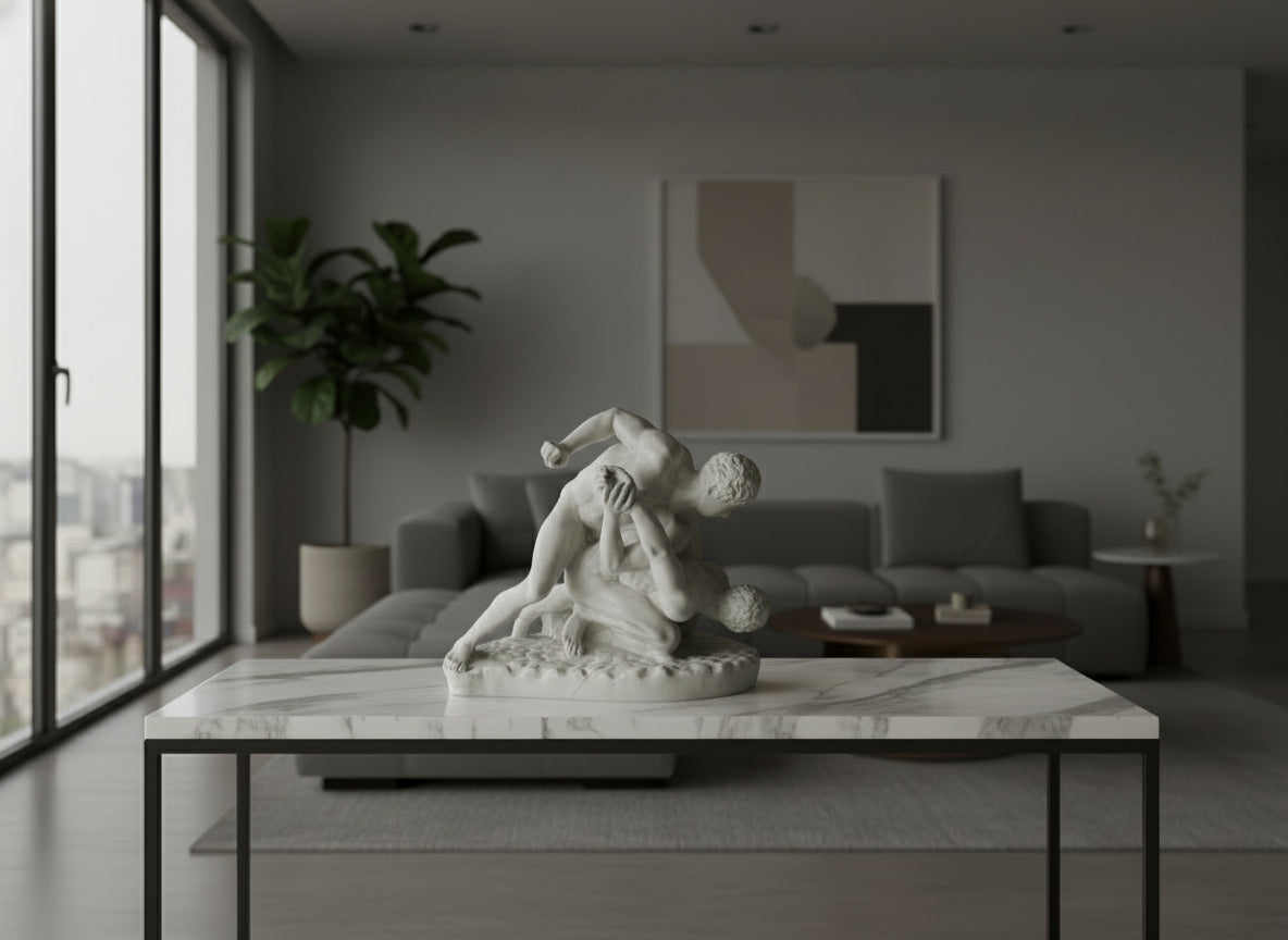 Die beiden jungen Männer betreiben den Sport Pankration , eine Art Ringen, ähnlich dem heutigen Sport „Mixed Martial Arts“. Die beiden Figuren umklammern einander, und einer scheint die Oberhand zu haben, indem er den anderen niederkniet und ihm den Arm nach hinten dreht. Ihre Muskelstruktur ist aufgrund ihrer körperlichen und anhaltenden Anstrengung sehr ausgeprägt und übertrieben.