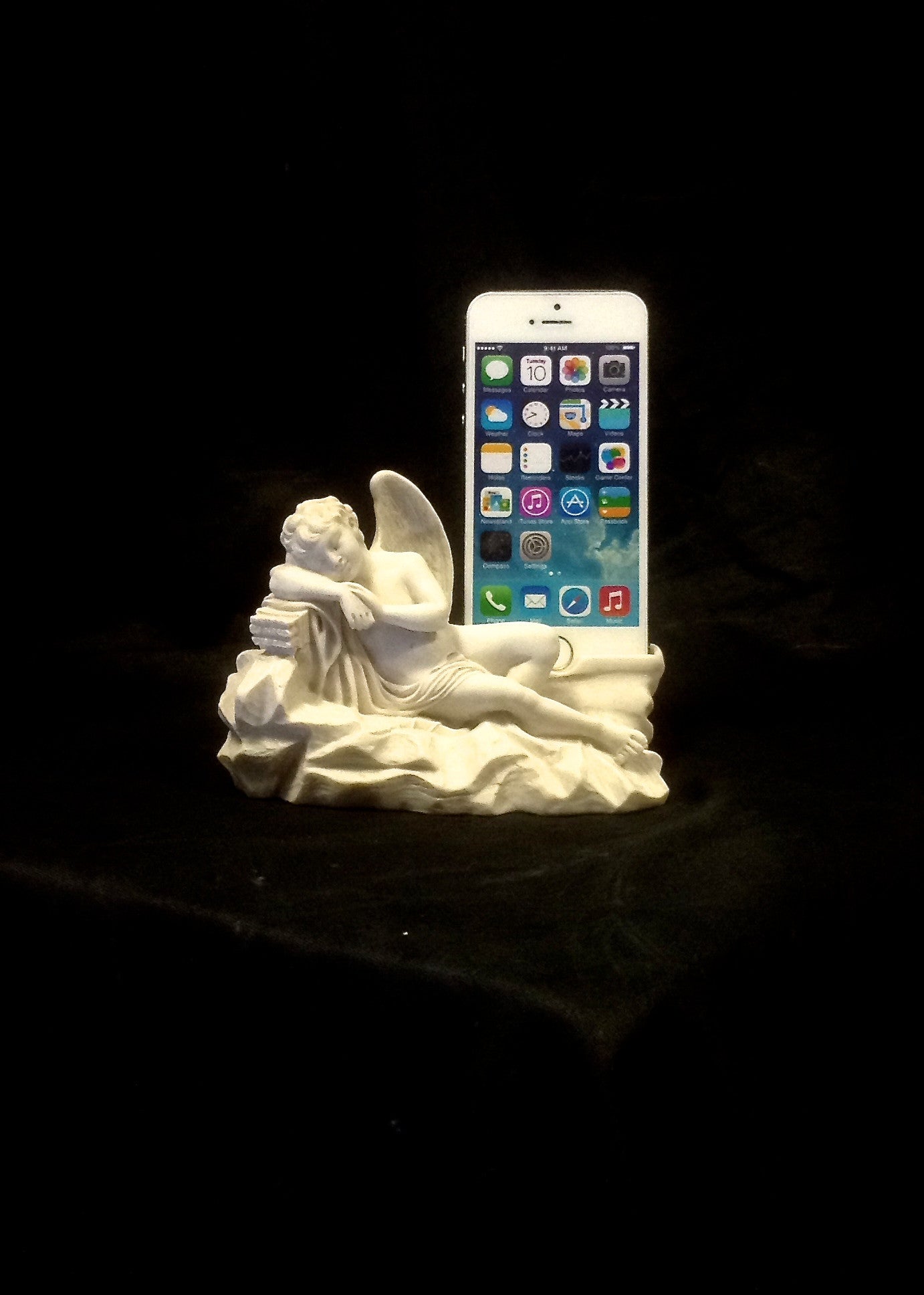 Reposez et rechargez votre iPhone aux côtés de notre Cupidon au repos avec son arc à ses côtés.