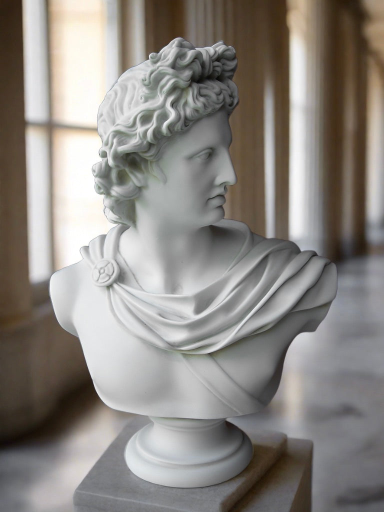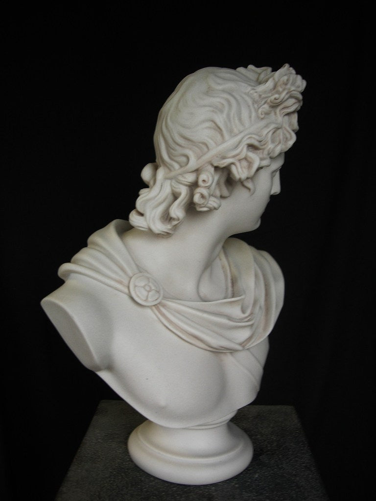 This bust is from a full marble statue, said to be the work of Leochares, which is housed in the great collection of the