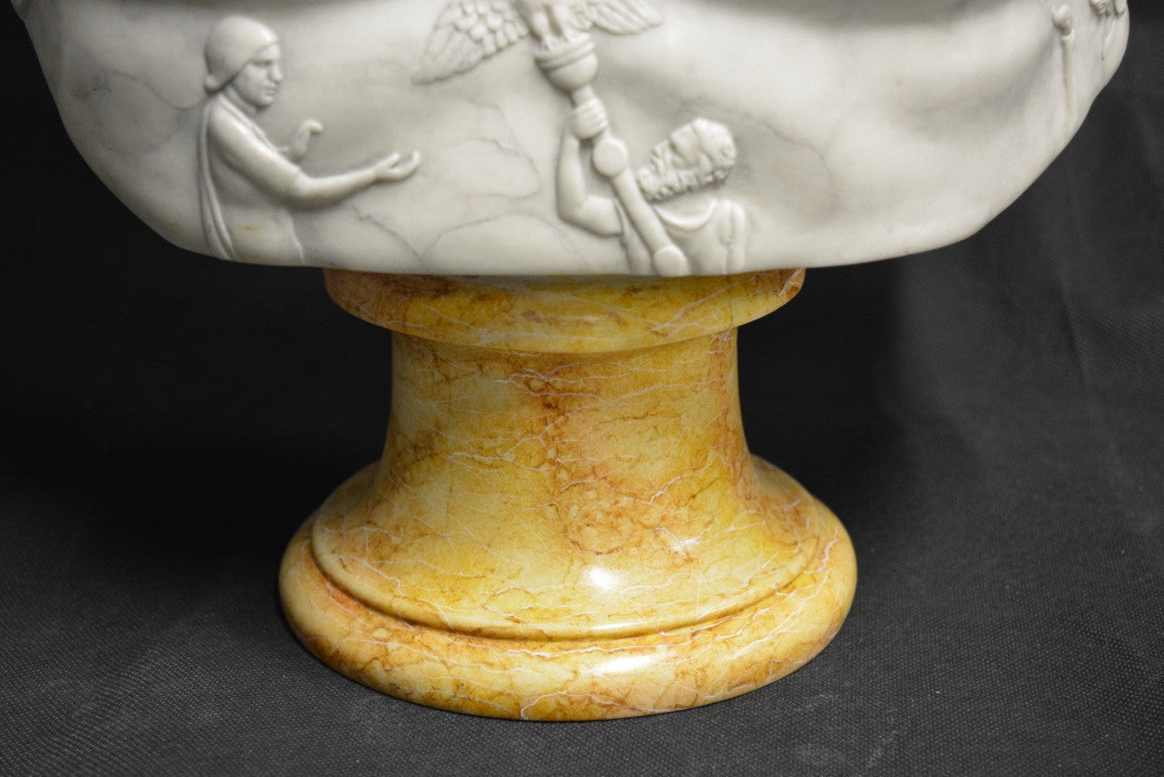 Augustus Caesar, finely finished in antique veined Carrara marble, supported by an antique Sienna marble socle.