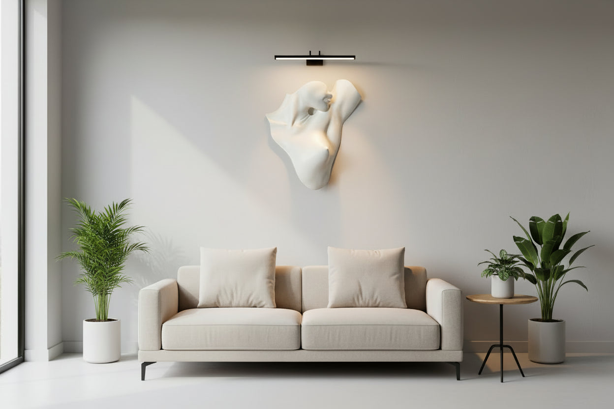 Imagine this elegant sculpture gracing your wall—the smooth surfaces catching light throughout the day, creating ever-changing shadows and highlights that bring the form to life. Whether displayed in a master suite, private gallery, design studio, or luxury commercial space, this piece creates an atmosphere of refined sophistication and artistic appreciation.
