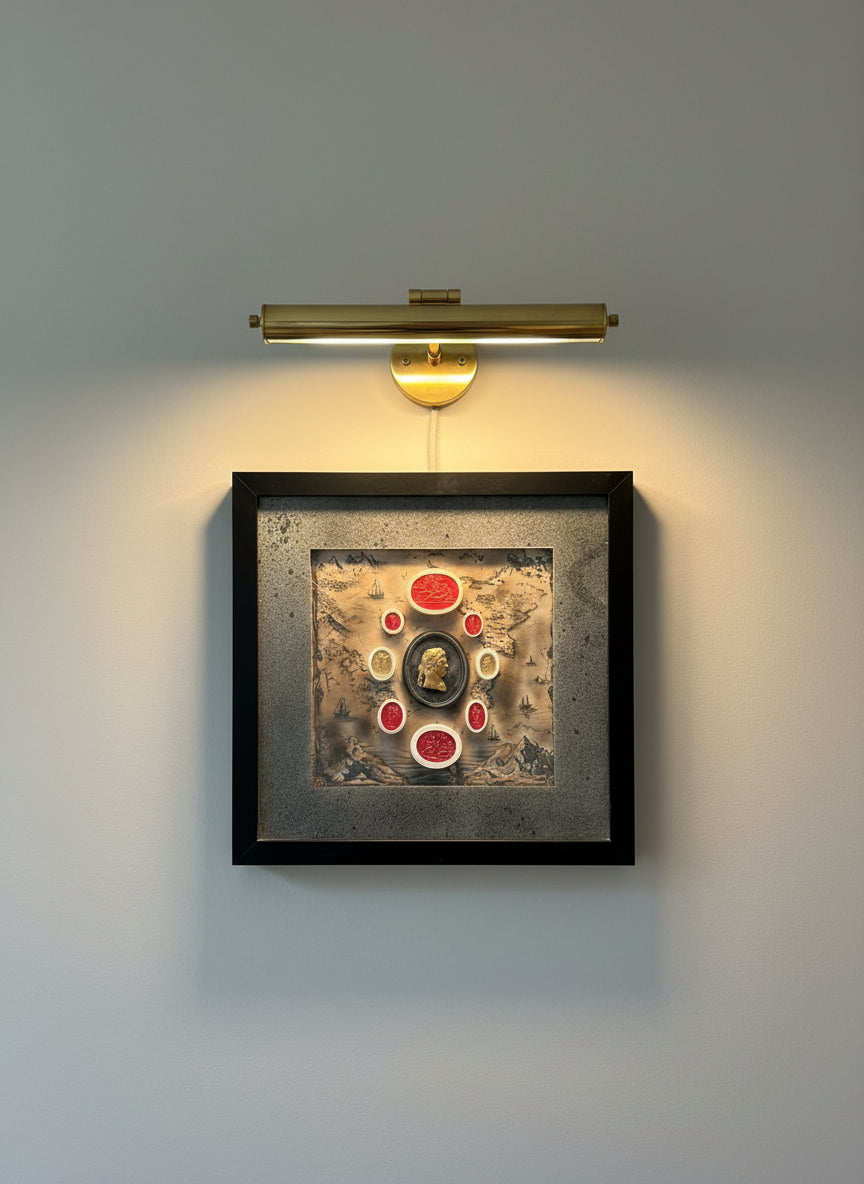 Intaglios in various finishes set on an old map backing