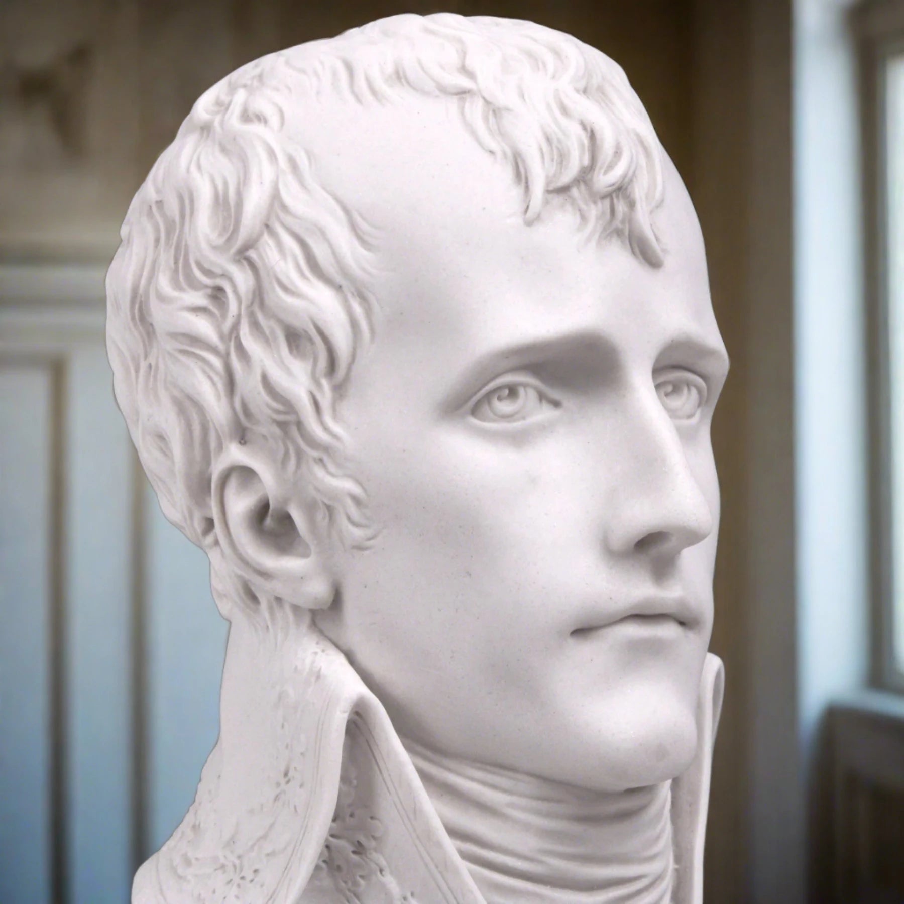 This fine bust of Napoleon depicts him as First Consul, a young man, portrayed in his double breasted tunic, with lace detail, and neck scarf.