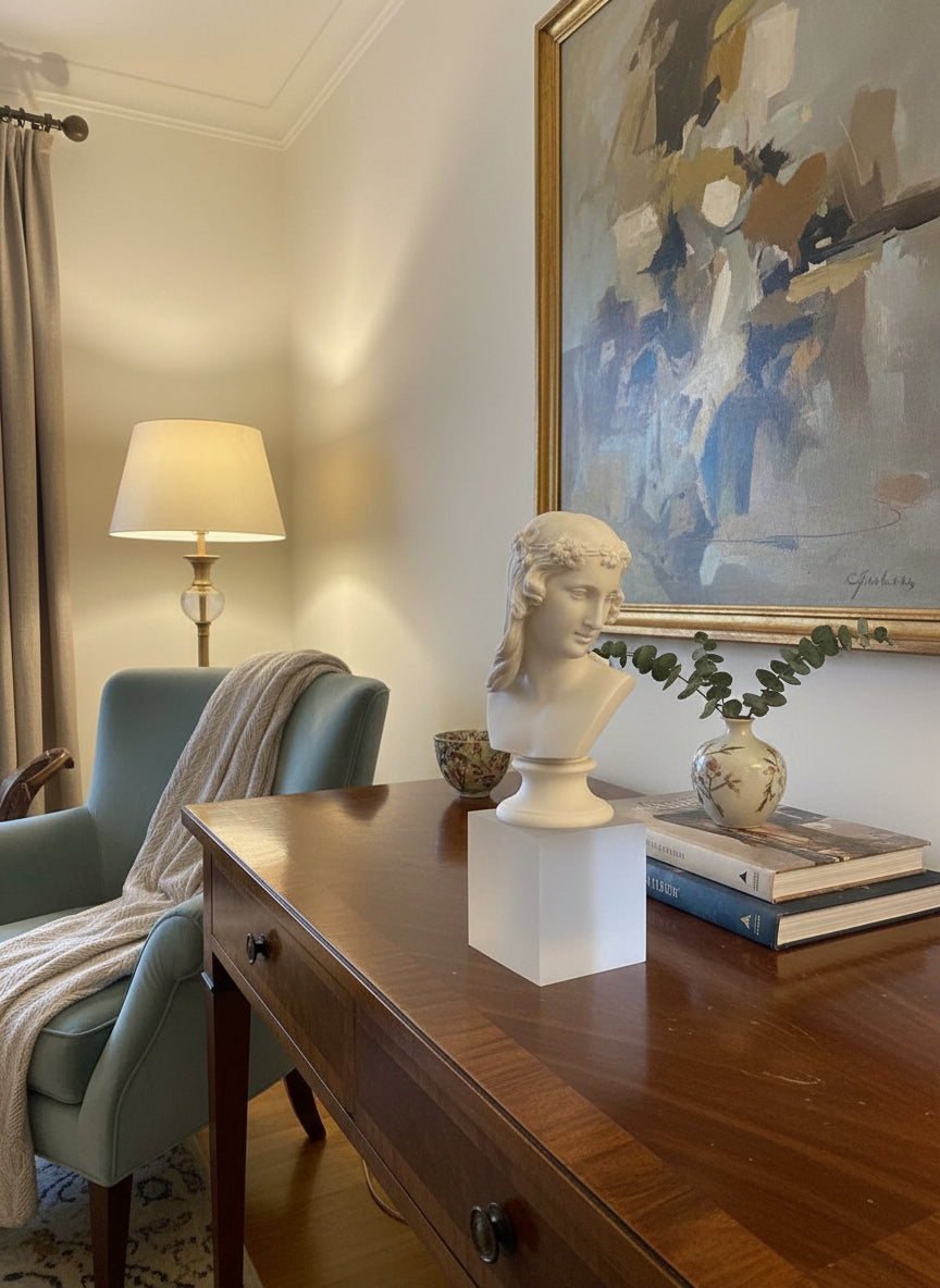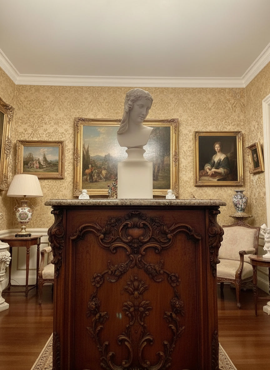 Ophelia marble bust, A lovely female sculpture, capturing her looking dexter, full of life, in a small scale that sits nicely when slightly elevated in her position.