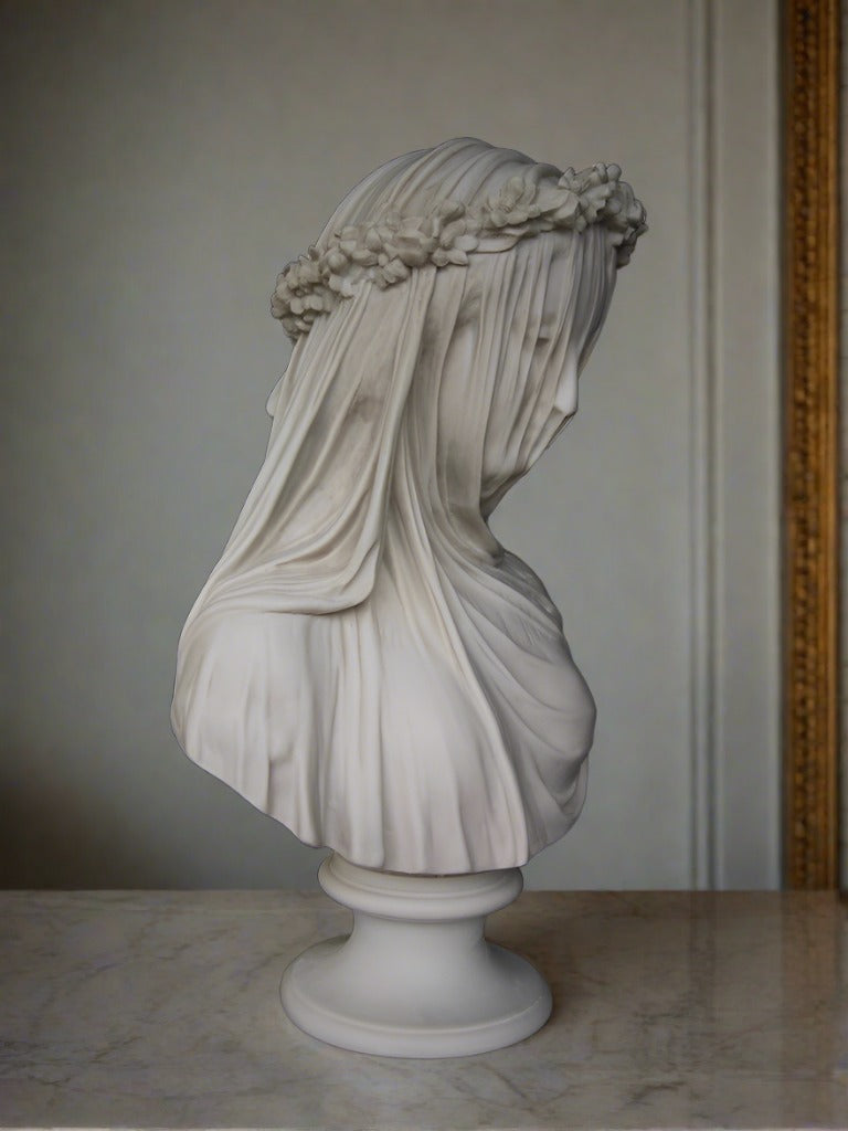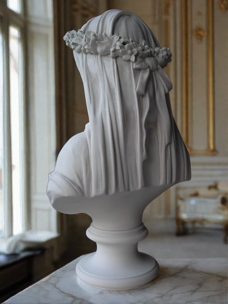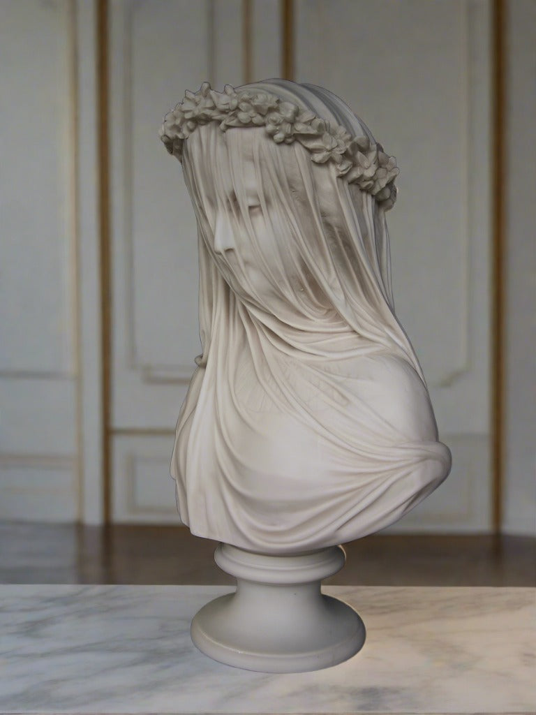 The "Veiled Lady", a marble bust, after the antique sculpture by Monti, 1875.