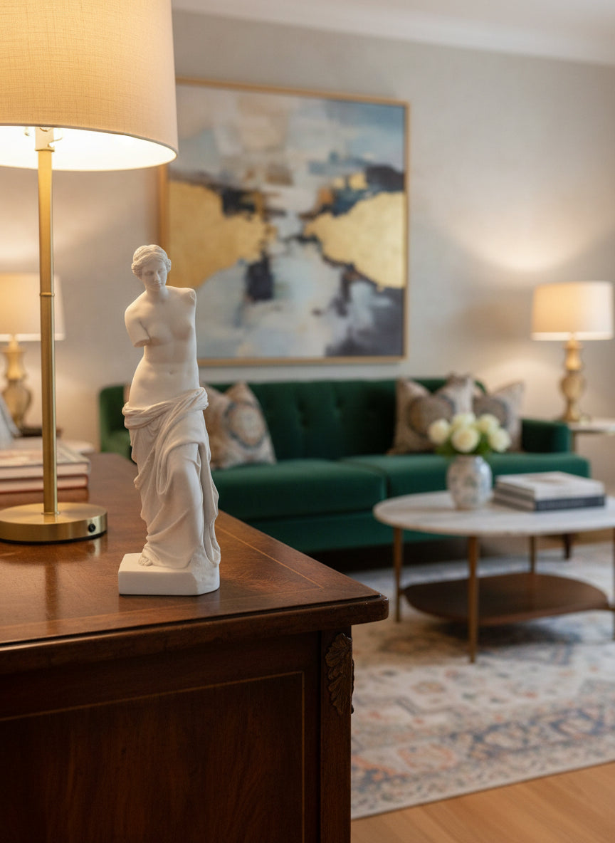 A marble miniature of Aphrodite of Milos, better known as the Venus de Milo, an ancient Greek statue and one of the most famous ancient marble works of art.